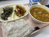 チャプチェ レモンドレッシング ひじきの炒め煮 白身魚の サラダ チリコンカン いわしの ねぎ塩ソース ピリ辛だれ ごはん 卵コーンスープ 米粉パン…
