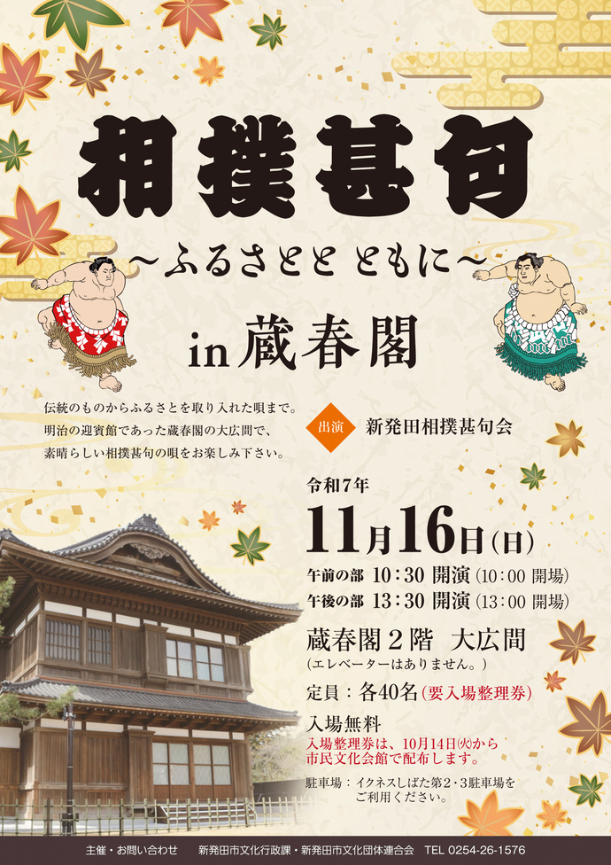 相撲甚句 〜ふるさとと ともに〜 in蔵春閣 Tweet シェア ページ番号1029925 更新日 令…